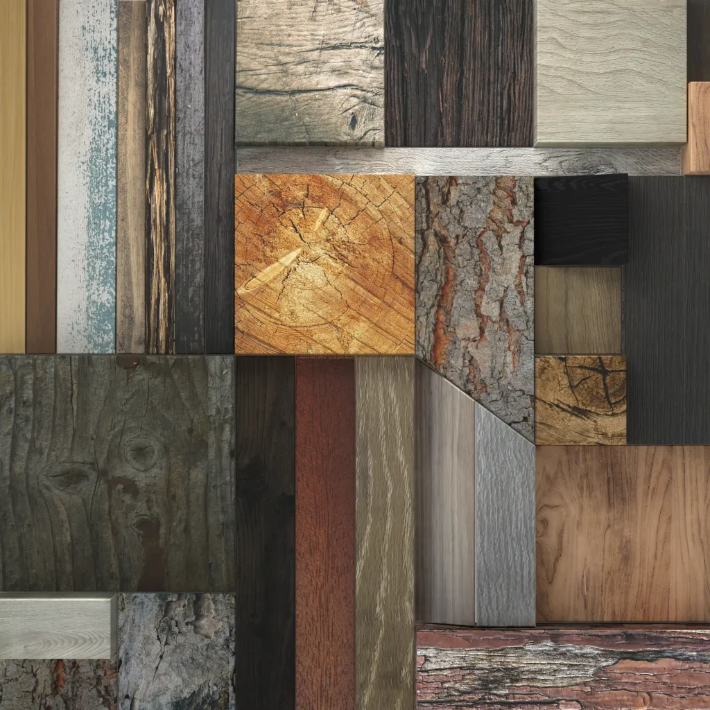 A coleção Wood capta a essência da madeira, oferecendo superfícies que combinam calor visual, autenticidade e sofisticação.